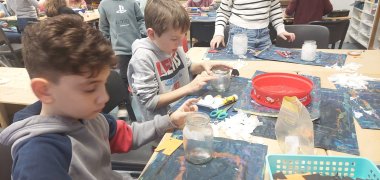 През октомври 2025 г. организирахме вечер на четенето в училище. Срещнахме се на голямата училищна врата в 18:00 ч. Всички бяха облечени с уютни дрехи и имаха със себе си одеяла. Най-напред г-жа Гердес, г-жа Дуесман и г-жа Холтман ни прочетоха приказки от Астрид Линдгрен, след което се настанихме удобно в нашите читателски пещери. Накрая всички се насладихме на вкусна пица.