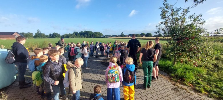 Днес компенсирахме отменената екскурзия от втори клас: Разходихме се до картофената нива на семейство Майер. След като стигнахме дотам, за първи път научихме много за картофите и начина на отглеждането им. Също така успяхме да открием много различни сортове в почвата. След това ни беше позволено да разгледаме отблизо голямата машина за прибиране на реколтата и дори веднъж да се качим на нея. Всеки един от нас събра по една пълна торба с картофи. Утре ще приготвим вкусни картофи за сандъчета и ще им се насладим с ябълков сос и билкова заливка.
