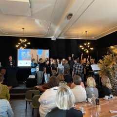 От 2019 г. EGS е носител на сертификата "Училище с профил Euregio", който се връчва ежегодно на церемония от областната управа на Мюнстер. Тази година ни бе оказана специалната чест да осигурим музикален съпровод за тази церемония по сертифициране. Затова отидохме в близкия Винтерсвайк (Нидерландия), за да вдъхновим публиката (сред която бяха европейският координатор на EGS г-н Поршен, учители от други училища с профил "Евриджо", областният председател на Мюнстер и кметът на Винтерсвайк) - с успех! Хорът блесна с немско-холандските си познания, анимира публиката да ръкопляска и беше изпратен с бурни аплодисменти. След кратък престой в града (придружени от холандските учители г-жа Битшайд и г-н Шенцел) те се върнаха с автобус в Епе.
