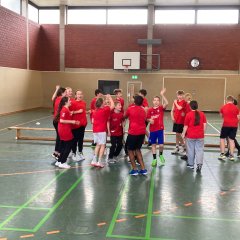 Миналия петък почти 120-те ученици в спортната зала, където се проведе традиционният спортен турнир малко преди Великденската ваканция, се разгорещиха. Четирите шестокласници трябваше да докажат спортния си талант в популярните спортни игри "футбол" и "доджбол". С голяма амбиция и най-вече с много забавление всички класове постепенно се състезаваха помежду си в двете категории. Подкрепени от фенски скандирания, плакати и възгласи, още след първите игри се създаде осезаемо усещане за стадион. В крайна сметка класовете постигнаха следните резултати: