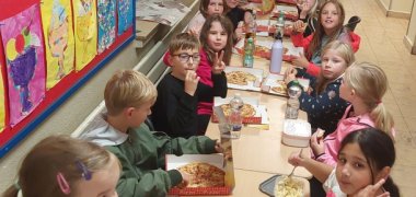 V říjnu 2025 jsme ve škole uspořádali večer čtení. Sešli jsme se u velké školní brány v 18.00 hodin. Všichni měli s sebou útulné oblečení a deky. Nejprve nám paní Gerdesová, paní Duesmannová a paní Holtmannová přečetly příběhy Astrid Lindgrenové a pak jsme se pohodlně usadili ve svých čtenářských jeskyních. Nakonec jsme si všichni pochutnali na výborné pizze.