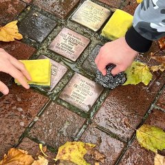 I letos se žáci v malých skupinkách s velkou radostí a přirozeností vydali do ulic Merschstraße, Oststraße a Wilhelmstraße. Kameny úrazu židovských rodin čistili a drhli houbičkami a kartáči. Žáci kameny nejen čistili, ale také udržovali živou vzpomínku na utrpení způsobené deportacemi a vraždami židovských žen, mužů a dětí.