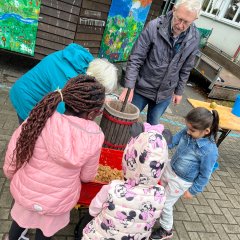 Po náročné práci při drcení, lisování a stáčení mohlo každé dítě ochutnat jablečnou šťávu. "Chutná to mnohem víc jako jablko než obvykle," zněl verdikt dětí.
