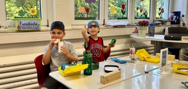 Děti ve třídě slonů dobře zahájily nový školní rok a nyní jsou hrdé na to, že jsou žáky druhé třídy školy Grüne-Aue-Schule. Školní den slonů začíná jako vždy volnou hodinou učení a hraní, během níž skládají puzzle, staví, hrají si a píší.