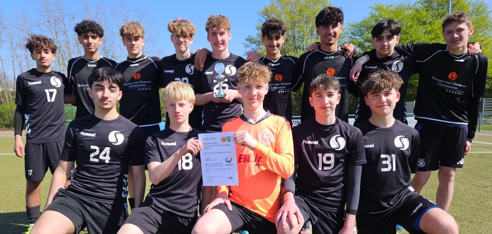 Školní tým z Werner-von-Siemens-Gymnasium Gronau (věková skupina 2009 až 2011) získal 9. dubna 2025 v Bocholtu na okresním přeboru (fotbal Wk II) titul okresního přeborníka. Na cestě za mistrovským titulem se utkaly školní týmy z Vredenu, Bocholtu, Borkenu, Stadtlohnu, Ahausu a ...