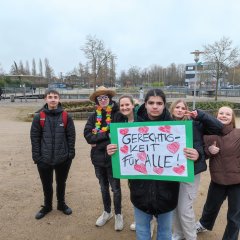 Vores skoles mangfoldighed blev demonstreret langs Schützenstraße, Friedensweg og Ochtruper Straße. Nogle elever havde forinden malet plakater, der udtrykte deres overbevisning.