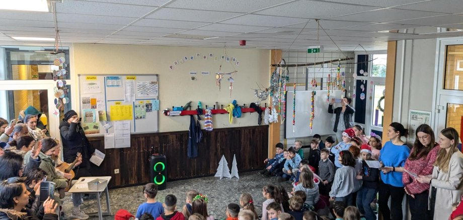 Én ting bør ikke mangle i adventstiden: Smukke julesalmer. Og de synges bedst sammen! Efter at vi havde haft travlt med at læse julehistorier og synge sammen i klasserne i hele december, blev starten på juleferien organiseret som et skolefællesskab. Så fredag den 20. december 2024 mødtes vi i fjerde time med alle klasser i skolens indgangsparti. Til vores store glæde blev vi støttet af mange forældre.