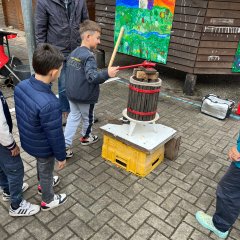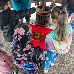 Efter hårdt arbejde med at rive, presse og aftappe fik hvert barn lov til at smage lidt æblejuice. "Det smager meget mere af æble end normalt," lød børnenes dom.