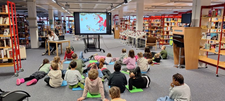 I adventstiden blev klasse 2b inviteret til en julebilledbogsbiograf på biblioteket i Gronau.