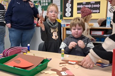 On Wednesday, a policewoman was there and all the children were allowed to ask questions and take a close look at the uniform. She then read a police book to all the children. All the children received a traffic booklet from Captain Bluebear and those who wanted to could try on the handcuffs.