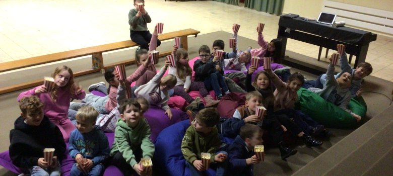 The children in class 1b recorded a radio play together with Ms. Vortkamp. Each child had a role; there were narrators, animal voices, human voices and noisemakers. On Wednesday, we made ourselves comfortable on cushions in the assembly hall. We then had popcorn and listened to the whole radio play. It was great fun.