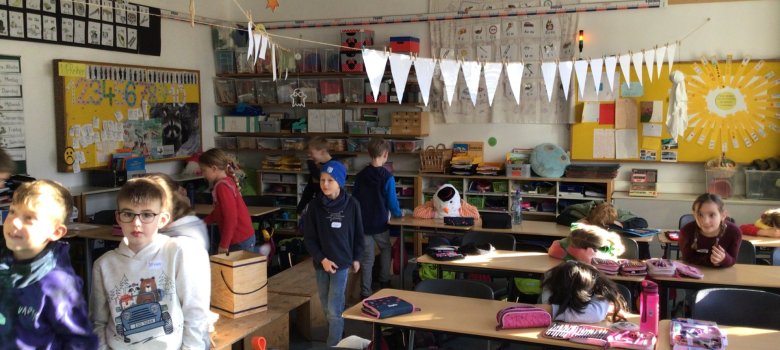 In October 2025, we held a reading evening at the school. We met at the big school gate at 6.00 pm. Everyone had cozy clothes on and cuddly blankets with them. First, Ms. Gerdes, Ms. Duesmann and Ms. Holtmann read us stories by Astrid Lindgren before we made ourselves comfortable in our reading caves. Finally, we all enjoyed a delicious pizza.