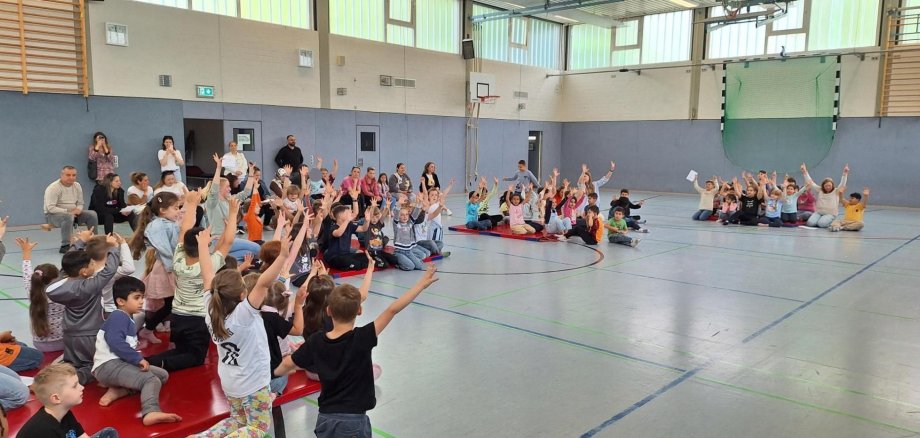 In addition to the classes, teachers and other employees of the Grüne-Aue-Schule, some parents also attended the Monday meeting and were delighted by the children's performances: The music groups of classes 1a and 2b led by Ms. Pöpping had rehearsed a spring song, which they accompanied with various instruments. The bee class 1b presented their morning ritual with Ms. Clemens: The welcome song "Ich bin löwenstark." Finally, the school community sang the school song.