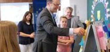 Los alumnos le presentaron una serie de proyectos creados por ellos mismos, entre ellos un puzzle de Europa, platos de arcilla y un parque de zapatos con elementos típicos de los Estados miembros, así como folletos informativos sobre la historia de la UE. "Es notable la intensidad y el detalle con que han tratado el tema de Europa", dijo Spahn asombrado.