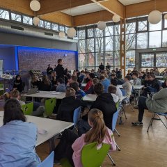 El detective superintendente Michael Wanning, de la autoridad policial del distrito de Borken, hizo una presentación impresionante e informativa sobre los peligros de Internet, el ciberacoso, el ciberbullying, el derecho a la propia imagen y mucho más. Los niños se mostraron muy interesados, aprendieron mucho y ahora navegan por internet de forma un poco más segura y responsable.