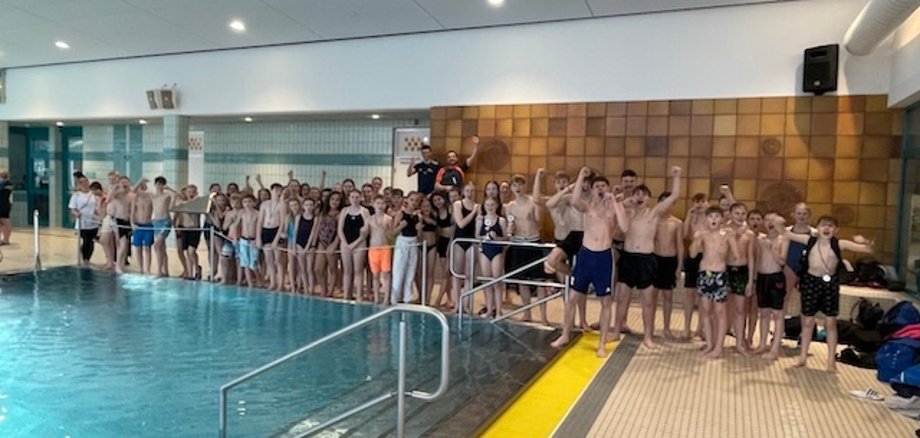 Möödunud reedel suundus Gronau ujulasse kokku 59 õpilast ja neli õpetajat, et osaleda tänavusel Gronau-Epe gümnaasiumide ujumisvõistlusel. Nad ujusid soopõhistes neljaliikmelistes vahetustes, kus iga osaleja pidi läbima 50 meetrit vabaltujumises. Meie õpilased said sellega suurepäraselt hakkama publiku pideva valjuhäälse toetusega, nii et me Euregio-Gesamtschule Epe'ina saavutasime viie kooli üldarvestuses tüdrukute puhul kolmanda koha ja poiste puhul isegi teise koha! Samuti saavutasid õpilased esikohad kooli sisemistel võistlustel ja võitsid mitmeid medaleid: