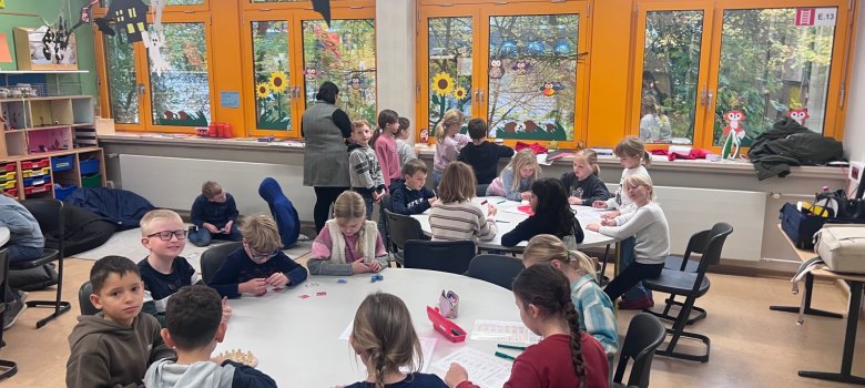 Ibu Sicking hadir di setiap kelas minggu ini dan berbicara banyak tentang gigi dan kesehatan gigi. Setelah itu, kami pergi ke ruangan yang telah disiapkan. Di sana, semua orang dapat menguji pengetahuan mereka di berbagai kerajinan tangan dan play station.