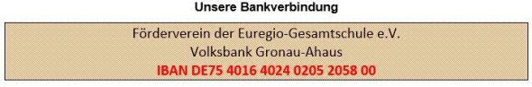 Teman-teman Sekolah Komprehensif Euregio mendukung sekolah dengan pembelian dan acara-acara yang melampaui peralatan dasar yang baik dari sponsor sekolah kami. Setiap euro yang disumbangkan bermanfaat bagi sekolah secara keseluruhan, masing-masing siswa dan dengan demikian kondisi belajar mereka!