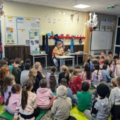 Untuk membuat kami berada dalam suasana Adven yang nyaman, kami tidak mengerjakan tugas menulis atau matematika hari ini, melainkan menghabiskan waktu seharian untuk membuat sesuatu. Kami memulai hari dengan bernyanyi bersama di area pintu masuk.