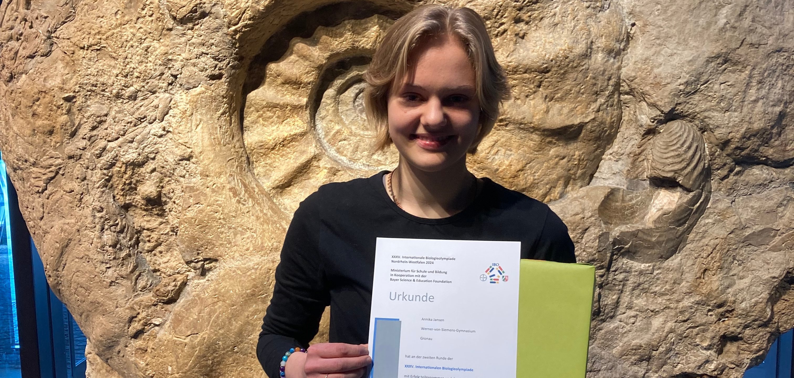 Annika Jansen dari tim Q2 berhasil lolos ke babak kedua Olimpiade Biologi Internasional, dengan meraih posisi pertama di NRW dan posisi keempat di Jerman.