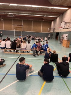 Turnamen bola voli tahunan untuk kelas enam menghadirkan permainan yang menarik dan suasana yang luar biasa di aula olahraga.