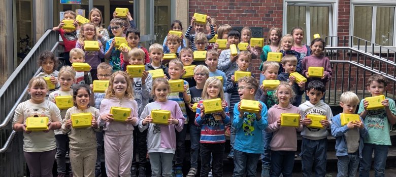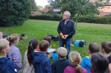 Come hanno fatto negli ultimi 12 anni, i signori Gartmann sono tornati oggi nella nostra scuola per spremere il succo di mela insieme agli alunni di prima elementare e ad alcuni genitori. Per prima cosa, le mele sono state tagliate in piccoli pezzi e poi tritate due volte prima di essere messe nello spremiagrumi. Il succo è stato spremuto con forze combinate. Poi è stato setacciato e infine ogni bambino ha potuto imbottigliare il proprio succo di mela appena spremuto.