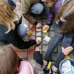 In un totale di sei località, gli alunni hanno fatto risplendere le pietre e si sono occupati delle storie delle persone i cui nomi sono riportati sulle pietre.