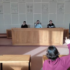 金曜日の早朝、参加者は「歴史の家」に移動し、ドイツ連邦共和国発祥の地を巡るガイドツアーで、まず議会評議会による基本法の起草に触れ、次にボンの旧委員会会議室で連邦参議院の活動に触れました。会議室の優れた音響効果と忠実な改築は、「高速道路での最高速度」というテーマについて、各大臣の立場から決定を下す機会として利用されました。また、連邦参議院の決定における投票行動と多数派の形成についても、実践的な方法でシミュレーションを行いました。