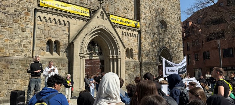 2025年3月28日、約300人の生徒が教師とともに町の中心部にある教会広場に集まりました。人種差別に反対し、尊敬に満ちた平等な共存を支持する、強く目に見えるシグナルを送るために、グロナウ中からいくつかの学校団体が集まりました。本校の生徒代表であるクララとベネットは、学校コミュニティを代表して一言ずつスピーチを行い、多様性と連帯が私たちの日常的な学校生活の中核をなす価値観であることを強調しました。同時に、自己反省を促し、差別に積極的に対抗するために責任を持つよう呼びかけました。