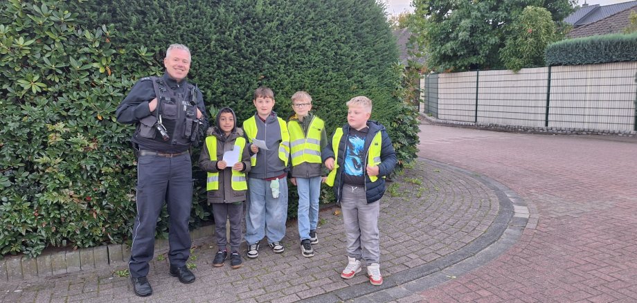 キャンペーン期間中、3年生数名とグローナウ市警は、ペスタロッチ通りやグリュンシュティーゲで、朝、保護者のタクシーが十字型に駐車している場所や、スピードの出し過ぎの車をチェックしました。