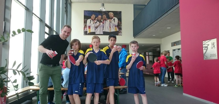 요헨, 니코, 알렉산더, 라이온이 뒤셀도르프 홈팀과의 첫 경기에서 3:2로 아쉽게 패한 것은 초반의 긴장감 때문이었습니다. 두 번째 게임에서 소년들은 많은 관중들에 대한 존경심을 제쳐두고 4:1로 자신있게 승리했습니다. 불행히도 세 번째 게임도 첫 번째 게임과 비슷하게 불행했습니다. 작은 실수로 인해 결코 더 나은 팀이 아니었던 오버하우젠 팀에게 3-2로 또다시 패했습니다. 이제 마지막 두 경기에서 승리해야 최종 라운드에 진출할 수 있었습니다. 불행히도 상대는 함께 플레이하지 않았습니다: 토너먼트의 후기 우승자 노이엔키르헨과 비어센의 강력한 플레이 팀을 상대로는 거의 기회가 없었습니다. 그럼에도 불구하고 우리 팀에게는 큰 성공을 거두었습니다!