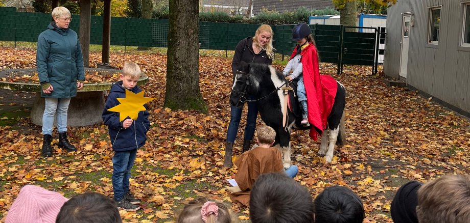 Todėl keli 2 klasės mokiniai ėmėsi užduoties integruoti šią istoriją į kasdienį Grüne-Aue-Schule mokyklos gyvenimą. Jie su dideliu entuziazmu ir užmoju repetavo savo tekstus ir vaidmenis, o pirmadienio rytą po generalinės repeticijos pristatė savo pjesę visai mokyklos bendruomenei.