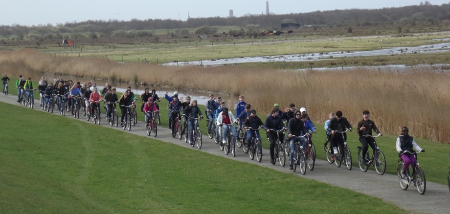Etter to timer ankom vi havnen i Borkum. Vi gikk til vandrerhjemmet, der vi først sjekket inn på rommene våre og hentet syklene våre. Etter en deilig middag fikk elevene tid til å utforske området og gå en tur på diget.