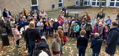 Z tego powodu kilku uczniów z klasy 2 podjęło się zadania włączenia tej historii do codziennego życia szkolnego w Grüne-Aue-Schule. Z wielkim entuzjazmem i ambicją ćwiczyli swoje teksty i role, a po próbie generalnej w poniedziałek rano zaprezentowali swoją sztukę całej społeczności szkolnej.