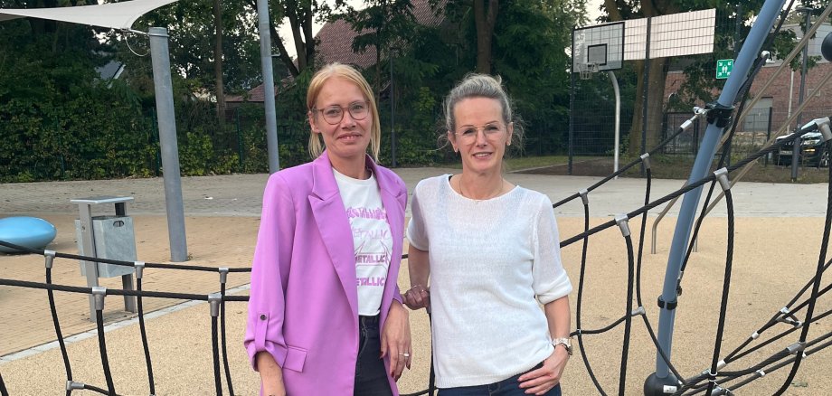 As novas presidentes do conselho escolar, a Sra. Schmidt e a Sra. Pauls, apresentam-se.