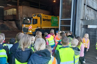 Am vizitat compania de eliminare a deșeurilor Westmünsterland din Gescher. Acolo am învățat mai întâi multe despre separarea corectă a deșeurilor. Apoi a trebuit să ne punem cunoștințele la încercare și să sortăm gunoiul în containerele potrivite. Apoi am vizitat amplasamentul. Erau multe camioane de gunoi pe drum și oameni care doreau să descarce ceva pe șantier. Am putut chiar să vedem un camion de gunoi descărcând toate gunoaiele. Pe drumul de întoarcere, am mers cu toată clasa la cântarul pentru camioane. Cu toții am cântărit 960 kg! Apoi am făcut hârtie. Pentru a face acest lucru, am rupt ziare vechi și hârtie colorată, le-am transformat în pastă și am lucrat cu rame de culegere. Fiecare dintre noi are acum o foaie de hârtie colorată, reciclată.