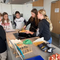 Clasa 6a s-a distrat foarte bine cu această concluzie a seriei de lecții orientată spre activități. Bucătăria nou-nouță a școlii din clădirea de pe Gasstraße nu a lăsat nimic de dorit - și, bineînțeles, a fost lăsată complet curată. Dorim să mulțumim departamentului de economie casnică pentru încrederea pe care ne-au acordat-o!