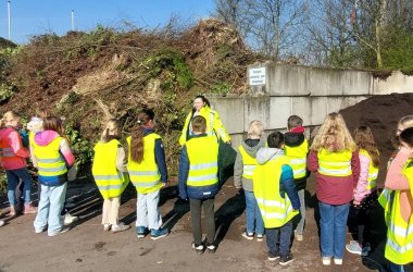 Мы посетили предприятие по утилизации отходов Вестмюнстерланда в Гешере. Там мы узнали много нового о правильной сортировке отходов. Затем нам пришлось проверить свои знания на практике и рассортировать мусор по нужным контейнерам. Затем мы осмотрели территорию предприятия. На дороге было много грузовиков с мусором и людей, которые хотели что-то разгрузить на строительной площадке. Мы даже смогли понаблюдать за тем, как мусоровоз выгружает весь мусор. На обратном пути мы всем классом отправились на весы для взвешивания грузовиков. Все вместе мы взвесили 960 кг! Затем мы сделали бумагу. Для этого мы разорвали старые газеты и цветную бумагу, превратили их в кашицу и работали с рамками для зачерпывания. Теперь у каждого из нас есть цветной лист бумаги из вторсырья.