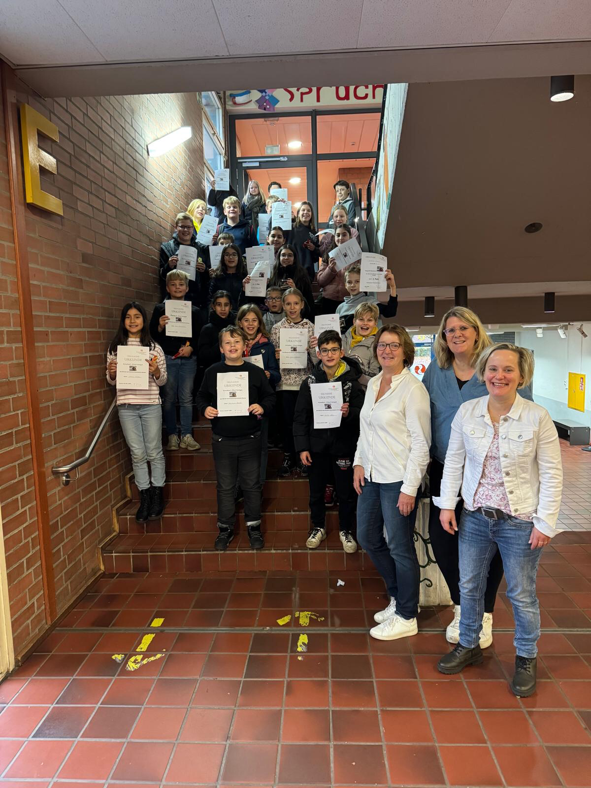 Školské družstvo chlapcov v hádzanej sa dostalo do tretieho kola súťaže III. triedy (ročník narodenia 2010 až 2012). Po víťazstve 36:29 nad zástupcom okresu Bottrop, gymnáziom Josef-Albers-Gymnasium, môže teraz naše družstvo reprezentovať okres Borken na okresnej úrovni. (BUS)