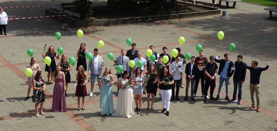 在过去的 6 年里,学生们经历了很多。他们参加了多次班级旅行,中学成为了一所综合学校,在荷兰建立了合作关系,机器人竞赛也被带到了学校,学校变得越来越大。从最初只有一个年级组和几位教师,到现在我们有大约 700 名学生和 50 多位教师。我们第一年就经历了所有这些发展。看到今年毕业的 10 年级学生的发展,我们感到自豪和高兴,同时也期待着欢迎他们中的许多人进一步进入我们的高中部。对于所有即将离开我校的学生,我们感谢你们在一起度过的时光,并祝愿你们未来一切顺利。我们还要向所有家长表示衷心的感谢,因为有了你们,我们才能在这六年里取得如此大的成功。尽管冠状病毒(它必将长久地留在我们所有人的记忆中)使我们无法举行经典的告别活动,但欢庆的告别对我们来说非常重要。因此,在遵守课间休息时间的同时,学生和他们的家长可以在我们的礼堂逐班参加毕业典礼。随后,在准备好的教室里拍摄了全家福,并在学校操场上拍摄了班级合影。