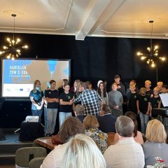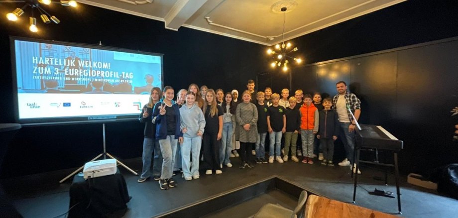 自 2019 年以来,EGS 一直持有 "Euregio Profile School "证书,该证书每年由明斯特区政府在仪式上颁发。今年,我们获得了为这一认证仪式提供音乐伴奏的特殊荣誉。因此,我们前往附近的温特斯韦克(荷兰),为观众(其中包括 EGS 的欧洲协调员 Porschen 先生、来自其他 Euregio Profile 学校的教师、明斯特区区长和温特斯韦克市长)带来灵感,并取得了成功!合唱团用他们的德语和荷兰语知识赢得了观众的热烈掌声,并在雷鸣般的掌声中离场。在该市短暂停留后(由荷兰语教师 Bittscheid 女士和 Schenzel 先生陪同),他们乘车返回埃佩。