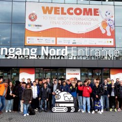 来自八、九和十年级技术课程的 40 多名学生在多特蒙德展览馆观看了 WRO(文字机器人奥林匹克竞赛)世界决赛中国际参赛者的精彩表演。