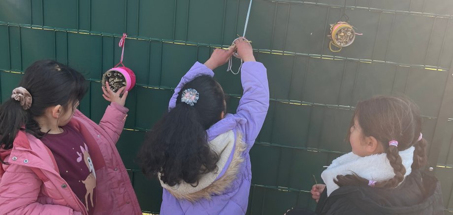 在公共图书馆共同研究之后,我们开始着手收集材料。我们收到了来自家人和周围环境的大量捐赠:罐子、大量竹子、稻草、棉絮、羊毛、树枝、石头和其他天然材料。有了这些材料,我们的工作才得以开始:我们用羊毛把罐子包起来,用砂纸打磨,把竹签和其他材料切割成一定大小,然后把这些东西装进罐子里。三个小组都表现出了极大的决心,并且互相帮助。结果不言而喻:昆虫旅馆不仅外观漂亮,设计也很有爱,昆虫在里面也非常舒适。许多昆虫旅馆直接挂在我们学校的后操场上。这样,昆虫们就可以安安静静地生活了,我们还可以时不时地查看一下昆虫旅馆里是否有昆虫栖息。我们非常激动,感谢所有为我们做出贡献的人!